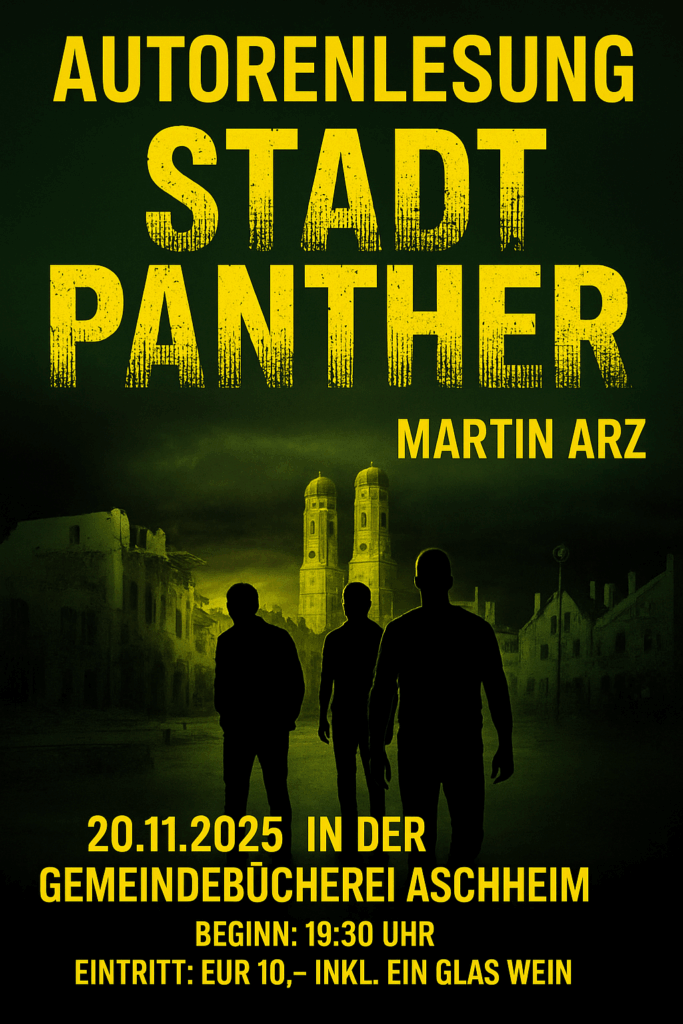 Am 20. November dürfen sich Krimifans und Geschichtsinteressierte in Aschheim auf eine spannende Lesung freuen: Martin Arz, Autor zahlreicher München-Krimis, liest aus seinem Werk „Stadtpanther – Vom Pfadfinderclub zum Verbrechersyndikat“.